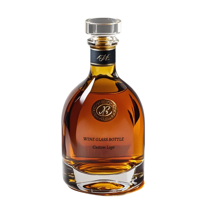 Product Name: Wholesale Empty Round Transparent Glass Wine Bottle Vodka Rum Whiskey Bottle Glass Liquor Bottle