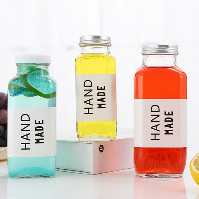 Product name: INS 180ml 250ml 350ml 500ml 12 ounce clear square Octagon glass beverage fruit juice milk tea bottle with screw lid