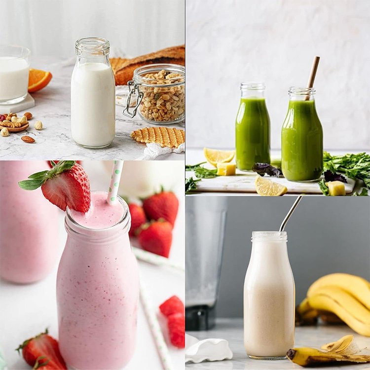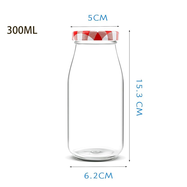 Product Name: 300ml Food Grade Glass Bottles Round Milk Bottle With Lids Clear Beverage Bottle With Metal Lids