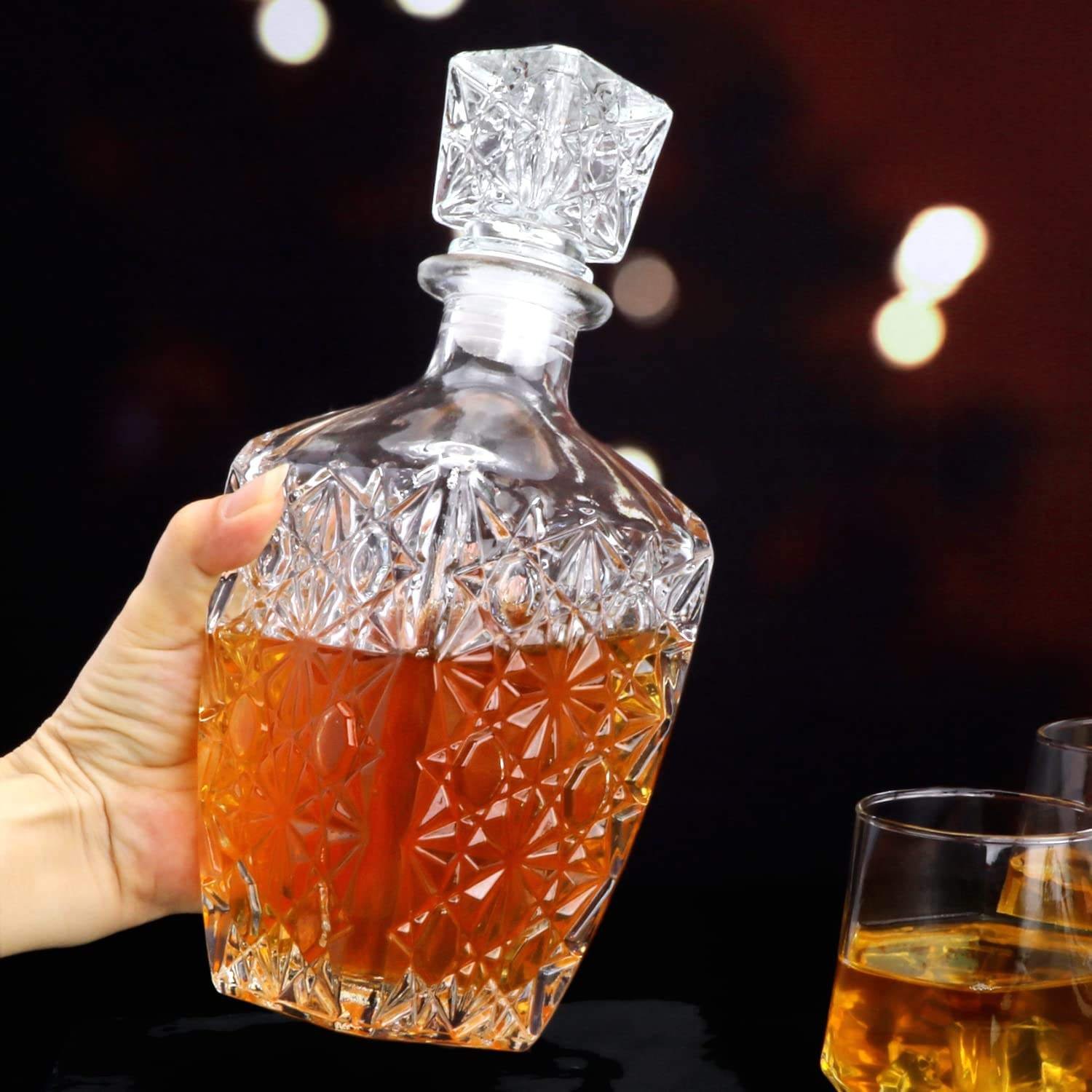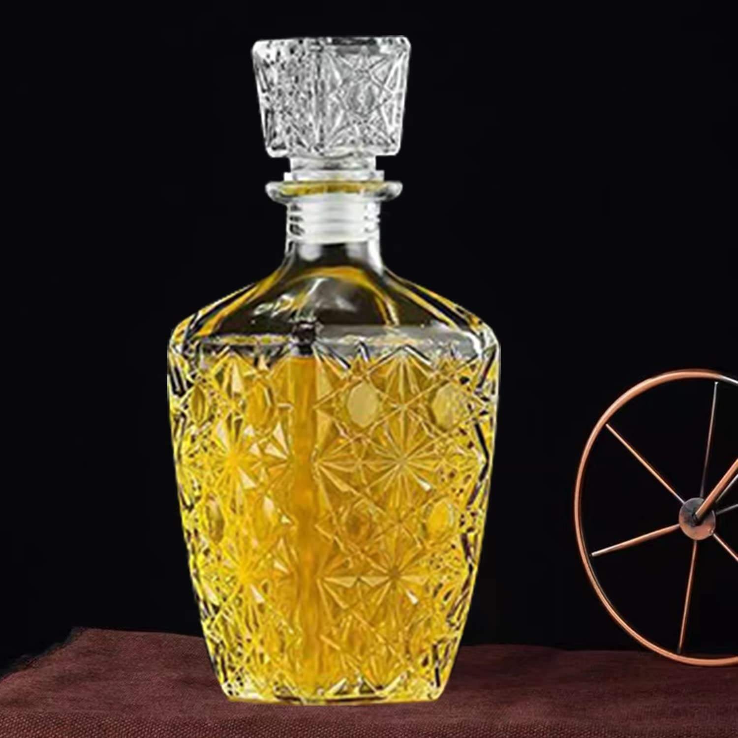 Product Name: 26oz Embossed Pattern Glass Wine Bottle with Lid Glass Decanter For Tequila